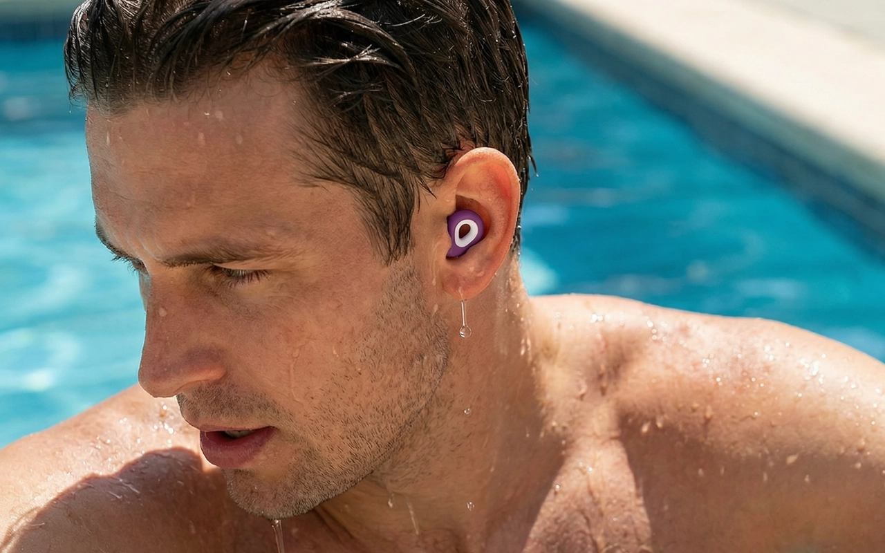 Poolsessions und Duschen sind sorgenfrei, weil kein Wasser eindringt. Die Ohren bleiben trocken und geschützt bei jedem Spritzer.