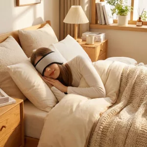 Ich bewege mich viel im Schlaf, aber diese Maske bleibt an Ort und Stelle. Die Ohrenteile sitzen fest, blockieren Geräusche und fallen nachts nie heraus.