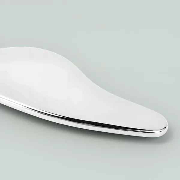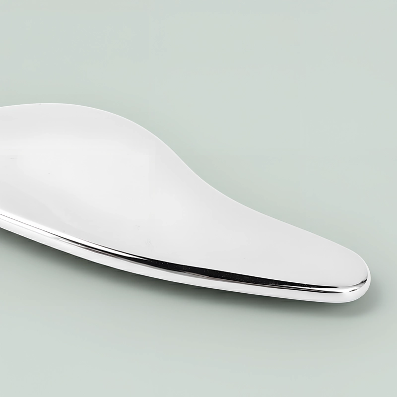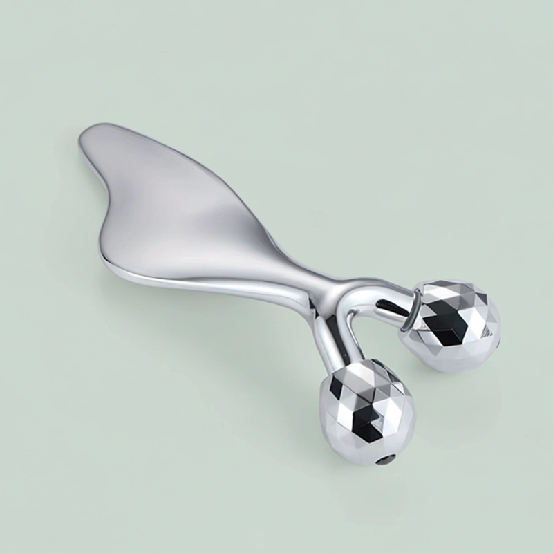 Sanfte Bewegungen beruhigen müde Gesichter und lindern Muskelverspannungen. Glatter Edelstahl fühlt sich kühl an und lässt Schwellungen verschwinden. Formen Sie Ihre Konturen und sorgen Sie für ein strafferes, jugendlicheres Hautbild.