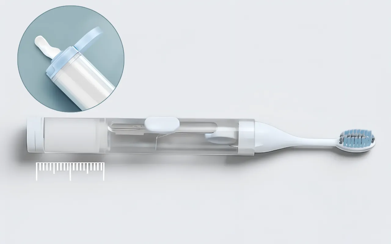Stecken Sie es in jede Tasche oder jeden Geldbe, ohne zusätzliches Volumen. Reisen Sie leicht und machen Sie sich nie wieder Sorgen um Ihre Mundpflege.