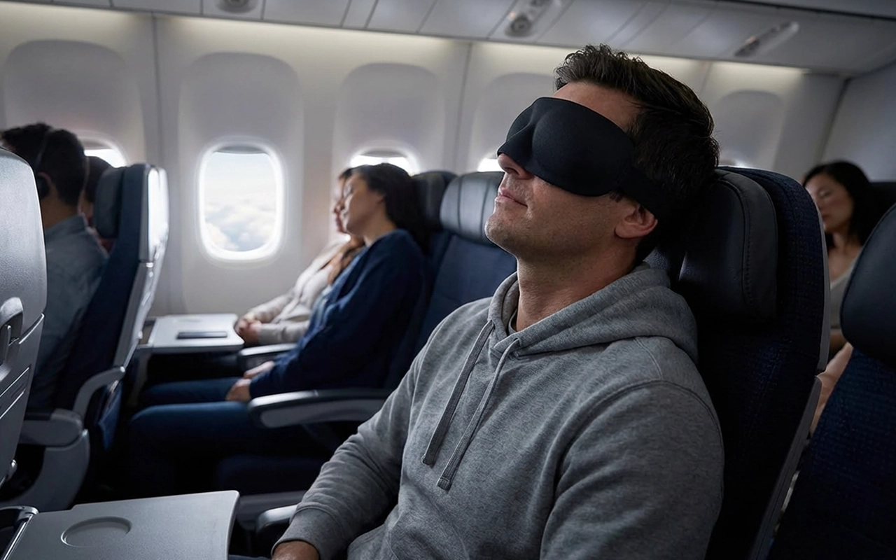 Ich bin beruflich ständig auf Reisen. Diese kleine Maske wohnt in meiner Tasche und verwandelt helle Hotelzimmer in eine ruhige Höhle, damit ich schnell einschlafen kann.