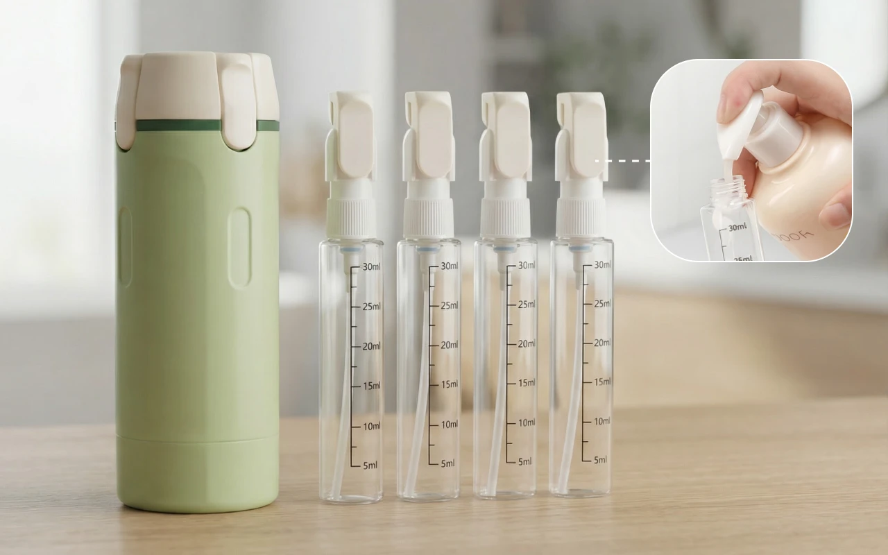 Das Packen für Reisen wird jetzt viel einfacher und schneller. Tragen Sie mehrere wichtige Dinge in einem leichten Ortorex-Flaschenset. Vermeiden Sie Auslaufen, Verwirrung oder verschwendeten Platz in Ihrer Tasche. Genießen Sie jedes Mal reibungsloses Dosieren und klare Beschriftungen.