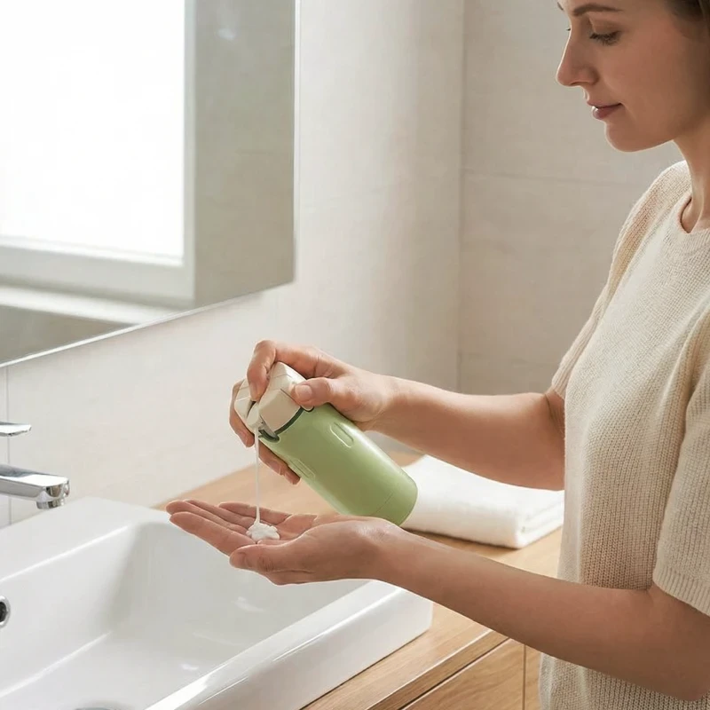 Alles, was ich brauche, passt in diesen Spender. Ich mag es, weniger Unordnung im Rucksack zu haben und sicher zu sein, dass meine Flüssigkeiten nicht auslaufen.