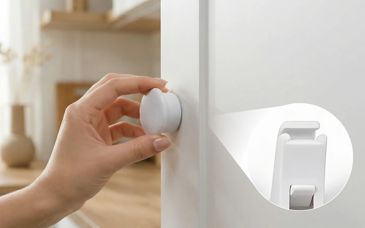Kleine Hände erkunden schnell, und Unfälle passieren im Handumdrehen. Ortorex magnetische Sicherheitsriegel halten Ihre Schubladen und Schränke sicher verschlossen. Für die Montage irgendwo im Haus sind weder Werkzeuge noch Bohren erforderlich. Das clevere, unsichtbare Design sorgt für aufgeräumte und schöne Räume. Jeder Riegel gibt Ihnen ein ruhiges Gefühl im Umgang mit neugierigen Kleinkindern.