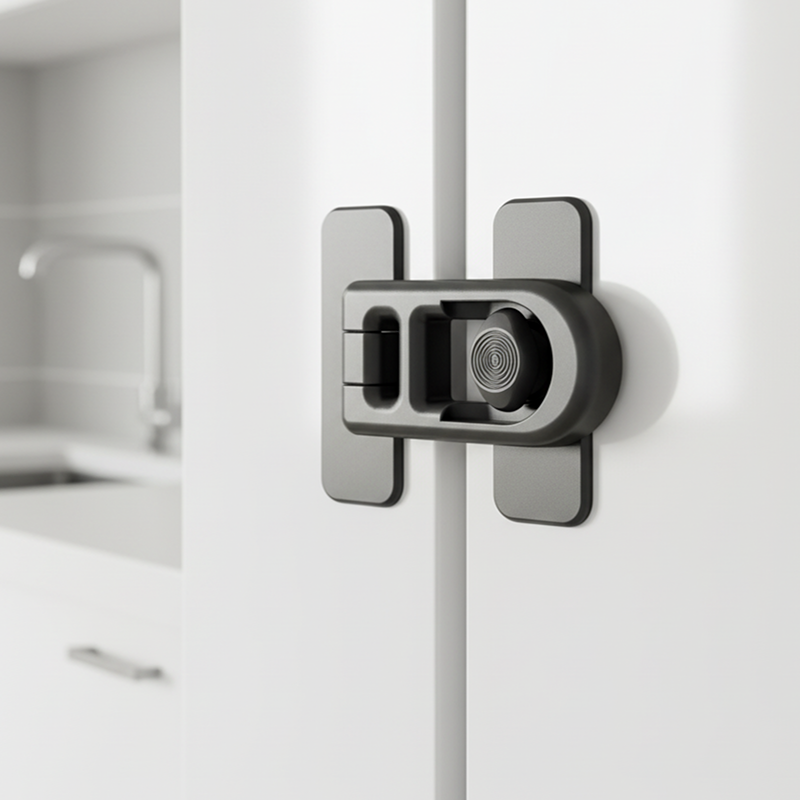 Erwachsene entriegeln in Sekundenschnelle mit einer einfachen Drehbewegung. Kinder können ihn nicht öffnen, sodass alles sicher bleibt.