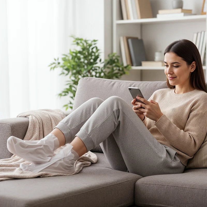 Ziehen Sie die Ortorex Fussmasken-Socken an und erledigen Sie Ihre täglichen Aufgaben problemlos weiter. Kein kräftiges Schrubben oder Salonbesuche nötig für eine sanfte Erneuerung zu Hause.