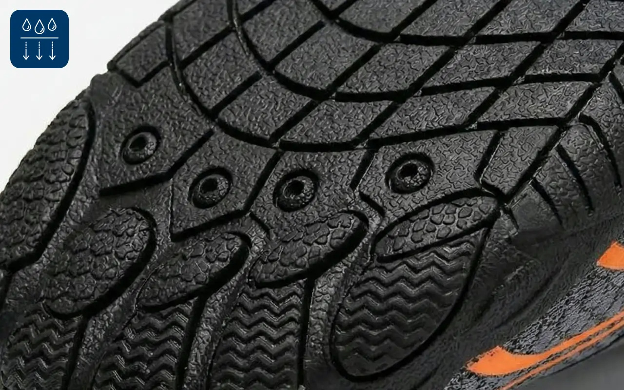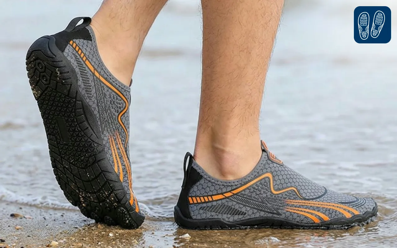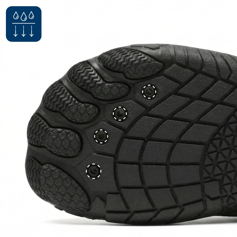 Wasser läuft schnell ab, sodass sich Ihre Füße nie durchnässt anfühlen. So können Sie ohne Unbehagen weitergehen oder schwimmen.