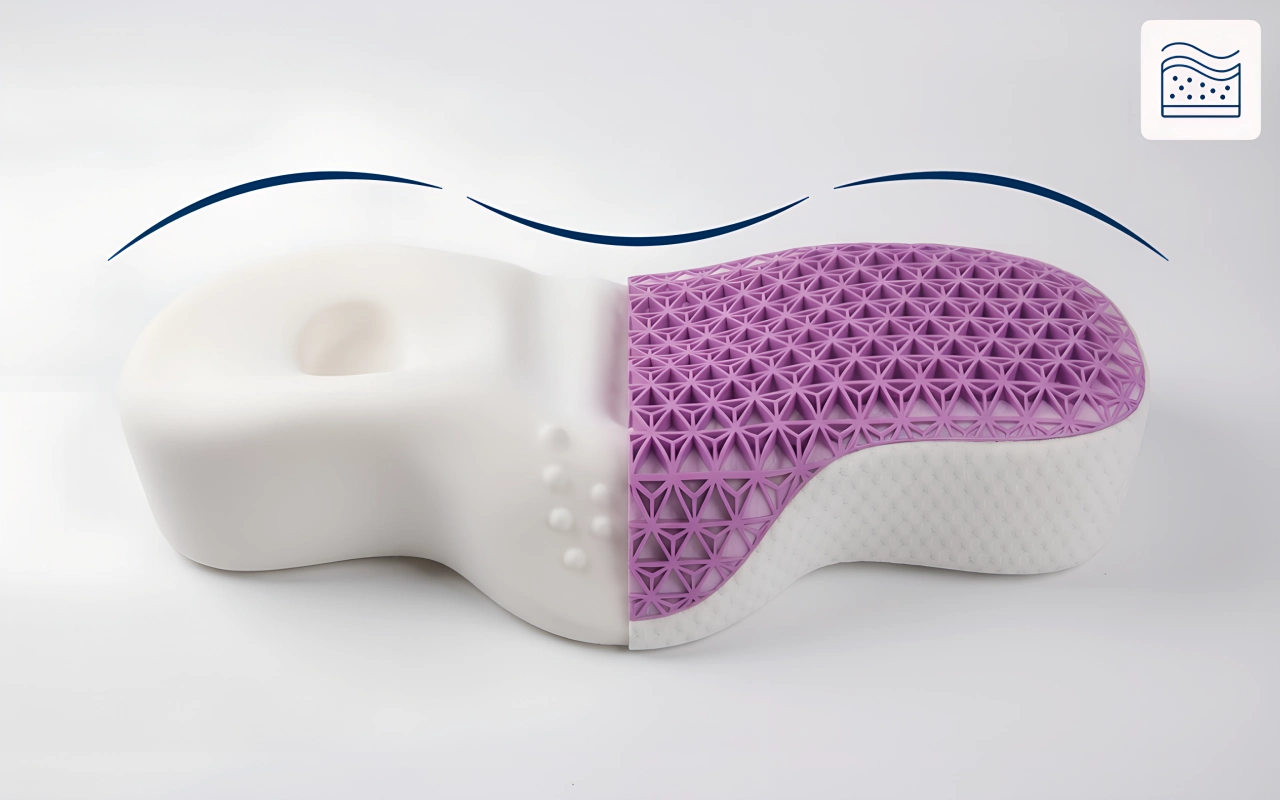 Dieses Design fördert die richtige Positionierung für eine erholsame Nacht. Es hilft, Schmerzen zu reduzieren, indem es die natürlichen Kurven unterstützt.