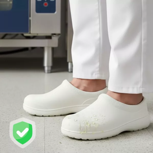 Ich habe überall Wasser und Öl verschüttet, aber mit diesen Clogs rutsche ich nicht. Sie passen gut und meine Füße bleiben den ganzen Tag glücklich.