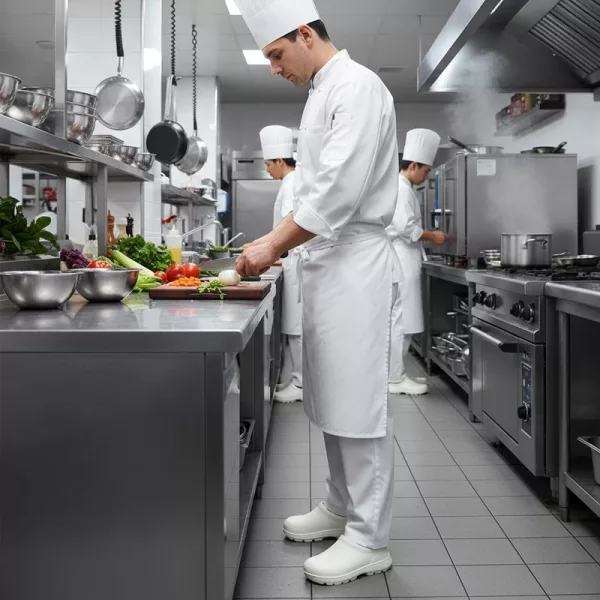 Diese Kochschuhe sind super bequem für meine langen Schichten und lassen sich nach einem chaotischen Tag sehr leicht reinigen. Sie bieten auch auf nassen Restaurantböden guten Halt.