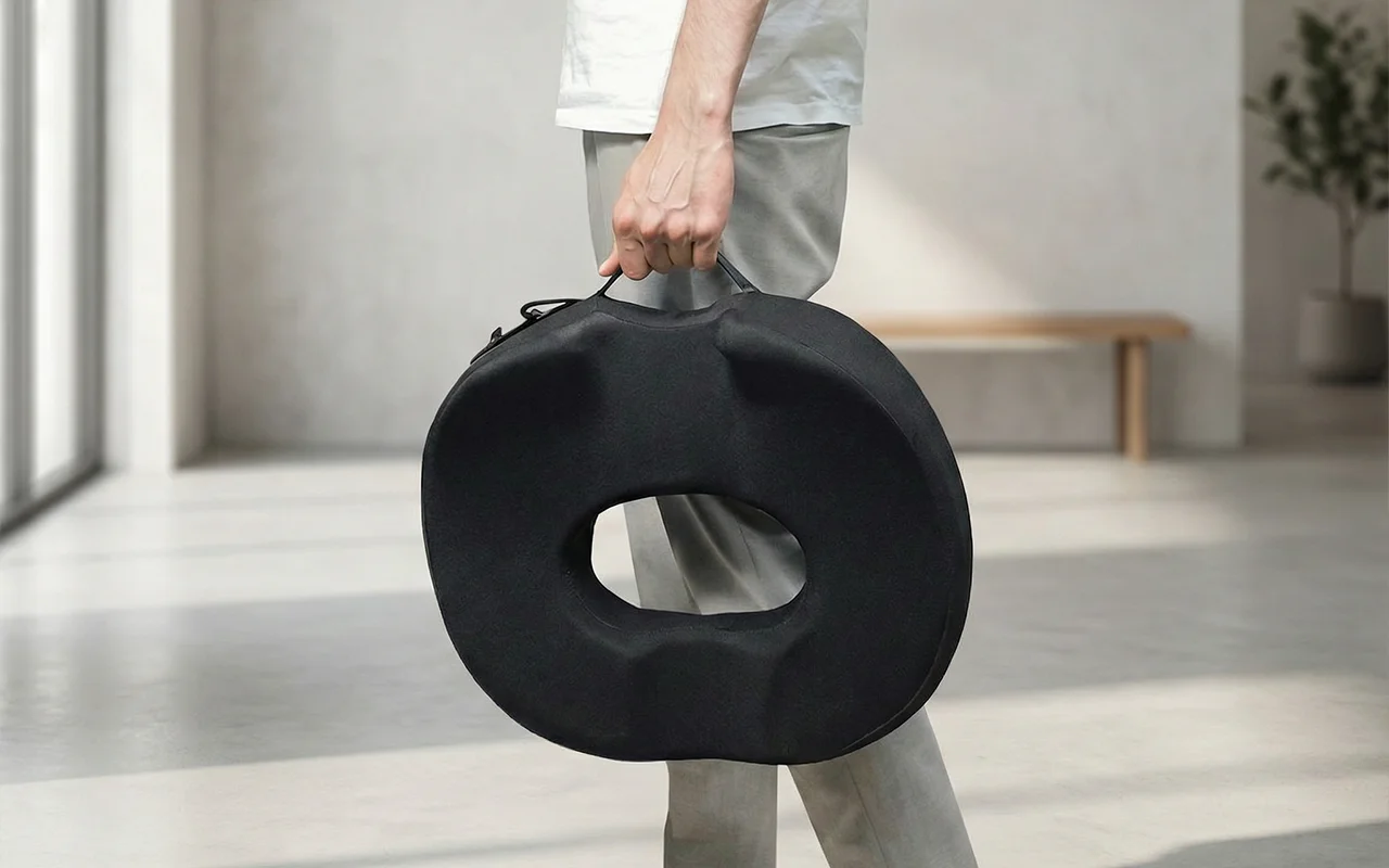 Mit dem leicht zu tragenden Griff und Haken können Sie den Komfort überallhin mitnehmen. Verwenden Sie das Ortorex Sitzkissen zu Hause, im Büro oder auf Reisen.