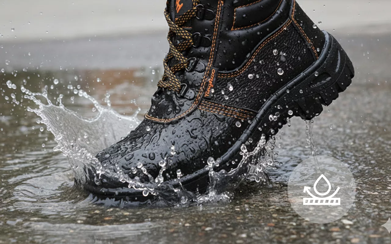 Rutschfeste Sohlen verringern das Risiko, auf nassen Böden auszurutschen. Bewegen Sie sich sicher auf Öl, Schlamm oder regennassem Untergrund.