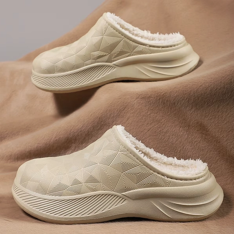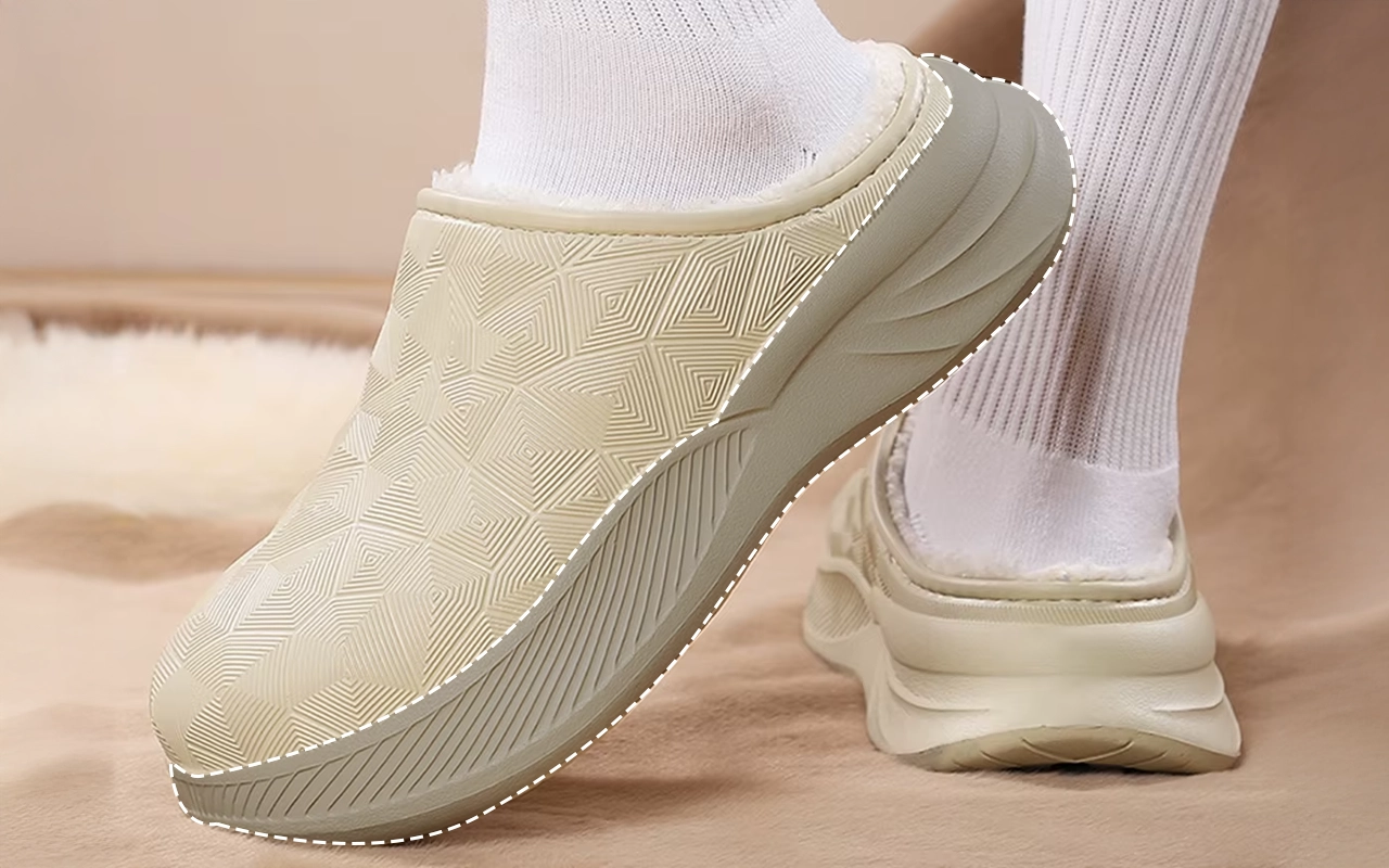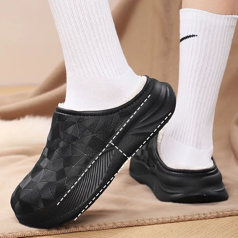 Dicke Sohle absorbiert Stöße und dämpft jeden Schritt. Bewegen Sie sich im Haus stabil und geschützt.