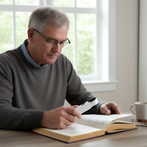 Ich bewahre diese Lupe neben dem Sofa für Kreuzworträtsel und Näharbeiten auf. Der Griff liegt bequem in der Hand und die LEDs helfen abends enorm.