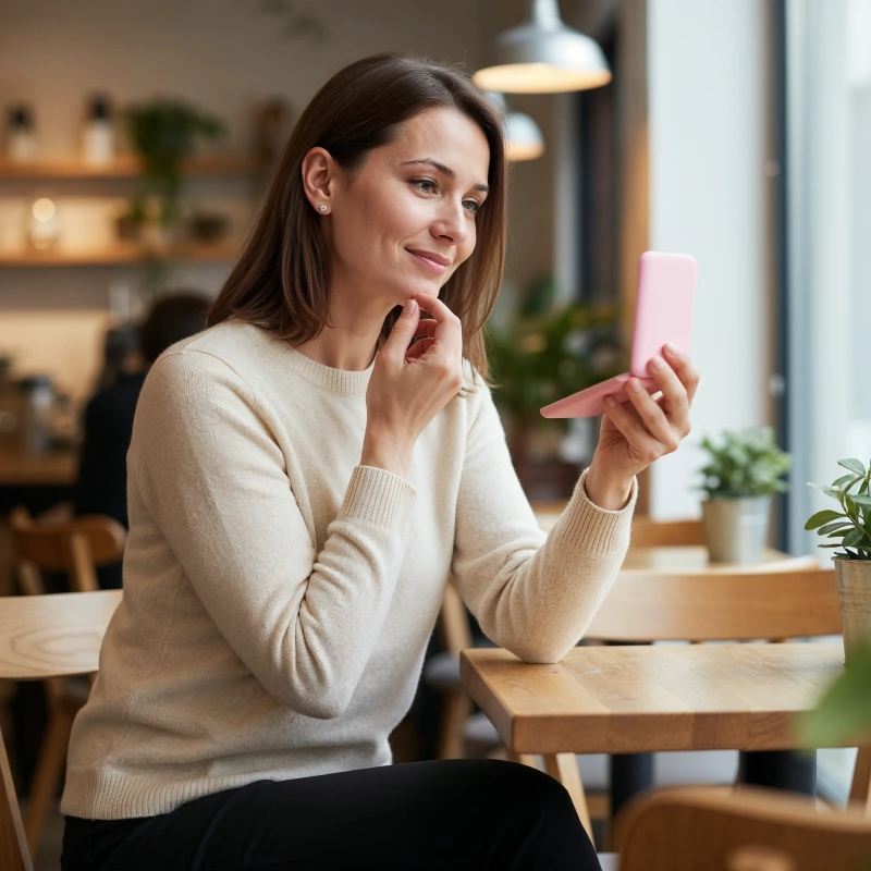 Ich benutze dieses Kompaktspiegel die ganze Zeit. Die Vergrößerungsseite hilft mir, meinen Lippenstift sogar ohne Brille sauber aufzutragen.