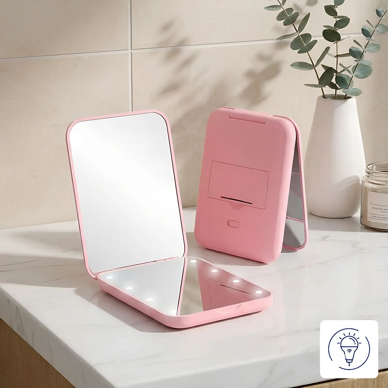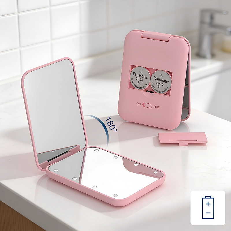 LED-Lichter leuchten hell und erleichtern das Auftragen von Kosmetika. Die Sichtbarkeit verbessert sich sogar in dunklen Räumen für höchste Präzision.