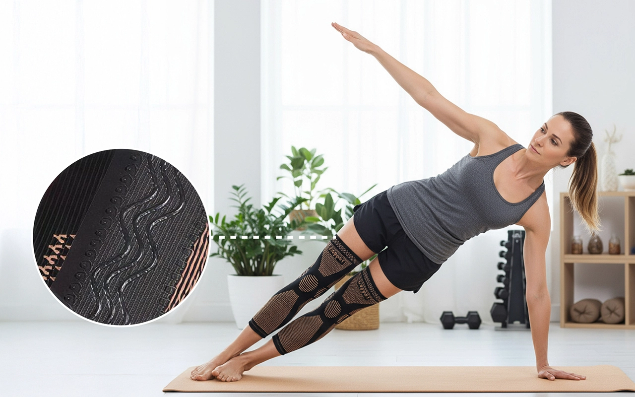 Dreifache Anti-Rutsch-Silikonstreifen verhindern das Herunterrollen oder Verrutschen am Bein. Bewegen Sie sich sicher beim Sport, bei der Arbeit oder beim Entspannen zu Hause.