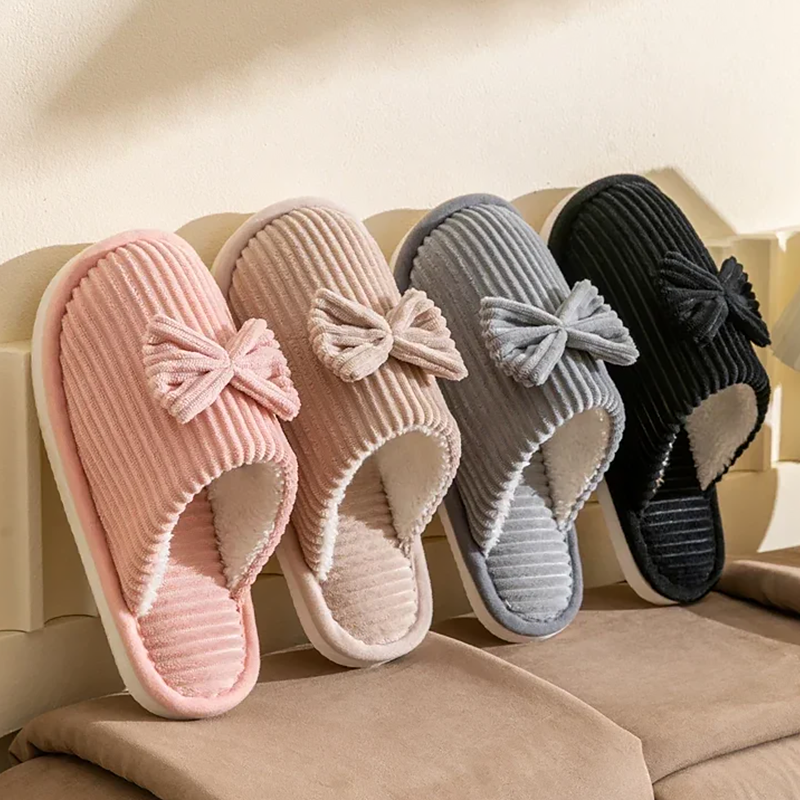 Ich kann gar nicht glauben, wie warm die sind! Ich trage sie vom Moment, in dem ich nach Hause komme, bis zum Schlafengehen. Die Schleife ist ein witziges Detail.