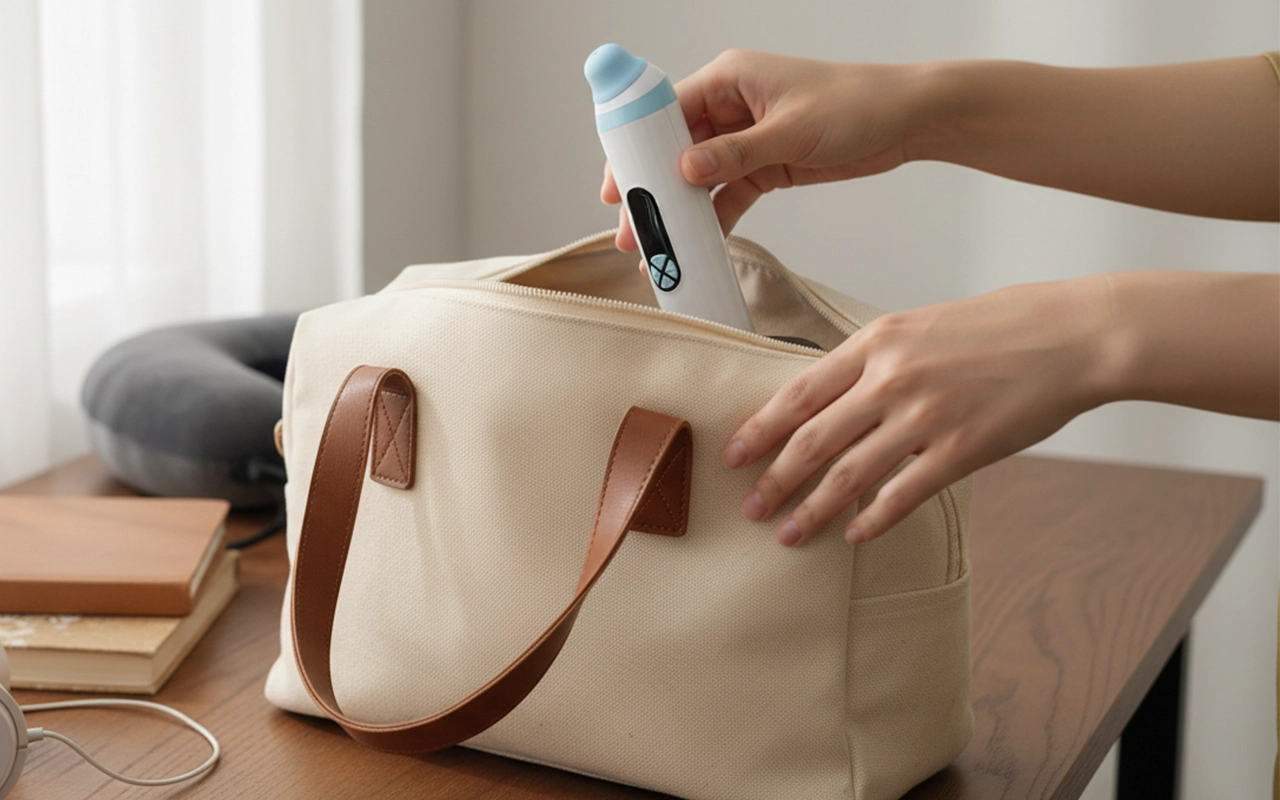 Stecken Sie das Gerät zur einfachen täglichen Nutzung in Ihre Tasche. Verwenden Sie es überall, wenn der Druck steigt – keine zusätzlichen Werkzeuge erforderlich.