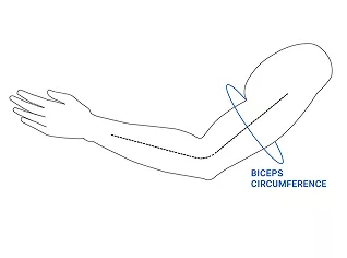 - 1. Legen Sie das Maßband um Ihren Bizeps an der dicksten Stelle.
