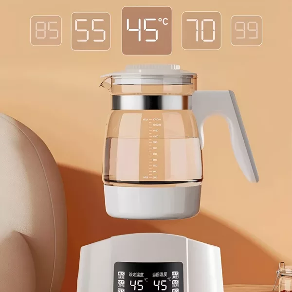 Ich mag, wie dieser Wärmer die Milch auf der richtigen Temperatur hält. Glas- und Stahlteile wirken sicher und die Reinigung ist jedes Mal super einfach.
