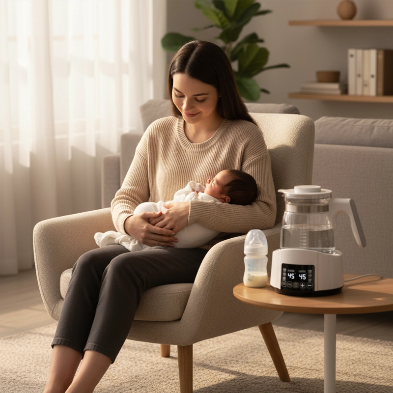 Der Flaschenwärmer lässt mich die Milchmahlzeiten besonders schnell zubereiten, vor allem wenn mein Baby nachts weint. Kein stressiges Füttern mehr.