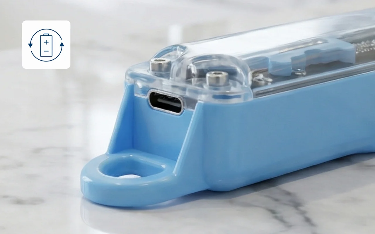 Laden Sie schnell mit USB für zuverlässigen täglichen Gebrauch. Das digitale Display zeigt immer an, wann ein Ladevorgang nötig ist.