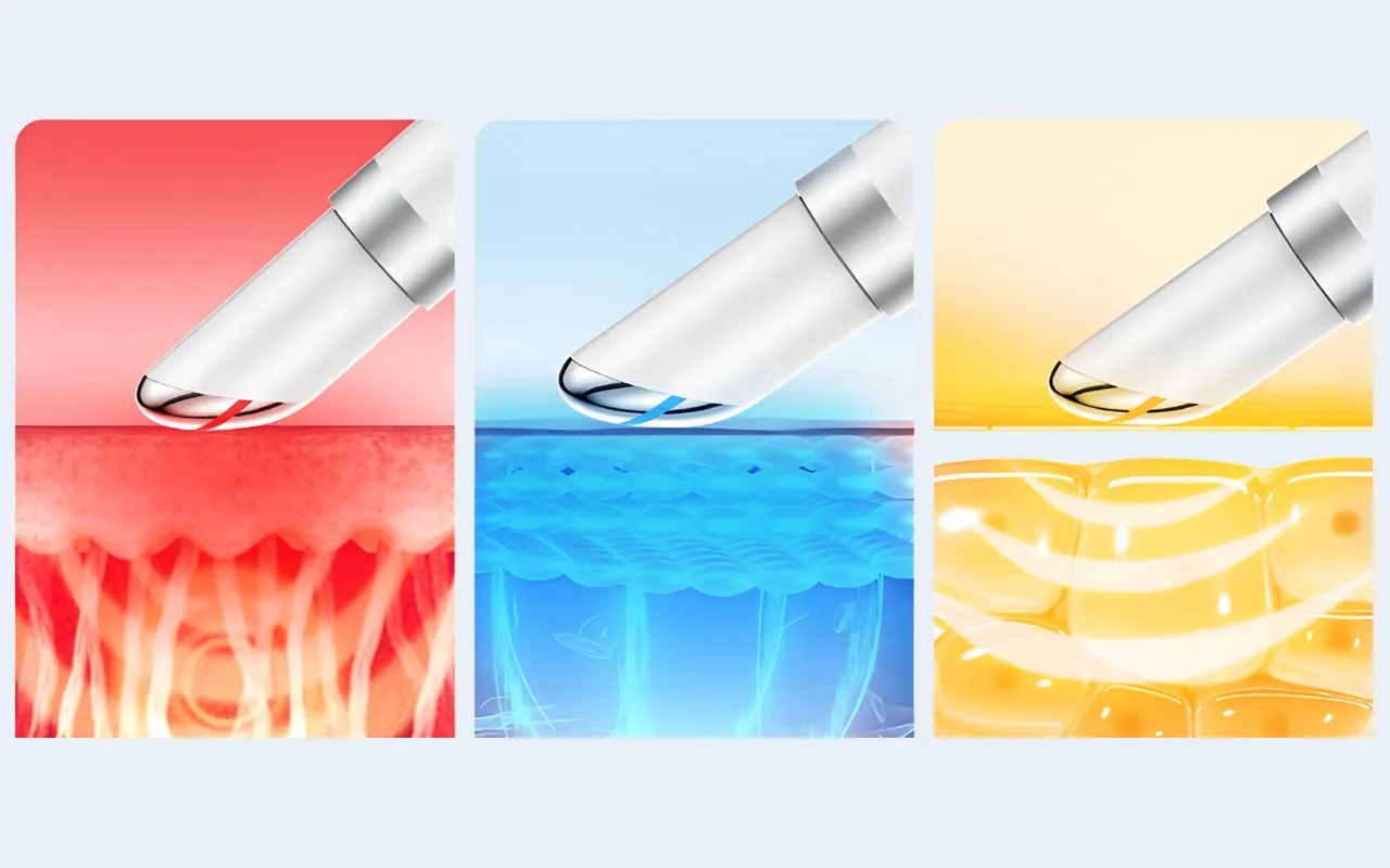 Dieses innovative Gerät verspricht umfassende Hautpflege. Es kombiniert EMS-, Wärme- und Lichttherapie, um die Zellreparatur und Regeneration zu aktivieren.