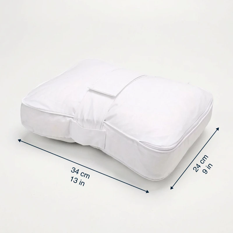 Der abnehmbare Bezug kann problemlos zu Hause in jeder Maschine gewaschen werden. Der verstellbare Gurt hält alles sicher an Ort und Stelle für ruhige Nächte.