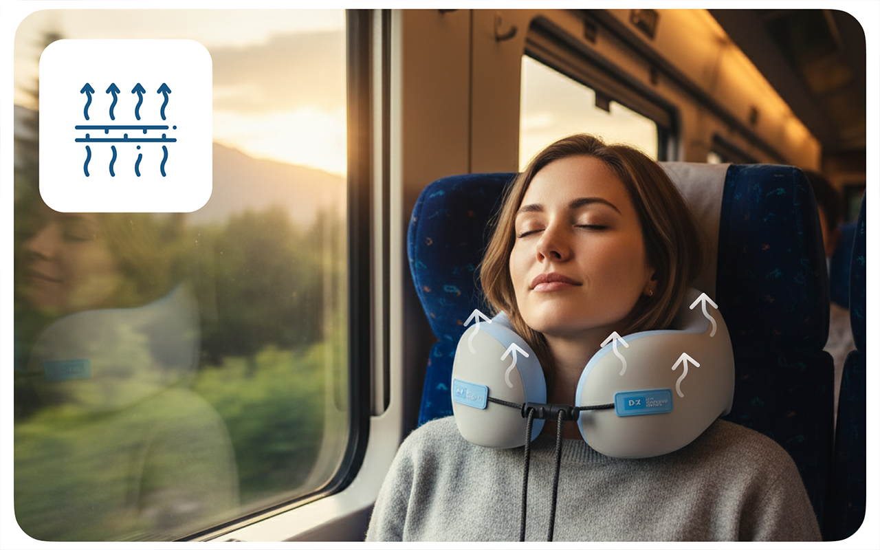 Lange Reisen verursachen oft schmerzende Schultern, steife Rücken und müde Köpfe. Das Ortorex-Kissen umschließt sanft Ihren Kopf und unterstützt Ihre Haltung. Jede Reise fühlt sich kürzer und viel angenehmer für alle an. Entspannen Sie sich, in dem Wissen, dass Komfort und Gesundheit immer in Reichweite sind.