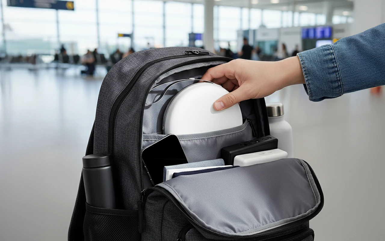Passt in eine winzige Hülle und spart kostbaren Platz im Gepäck. Nehmen Sie es überallhin mit, vom Flugzeug bis zur Autofahrt, ganz ohne Aufwand.