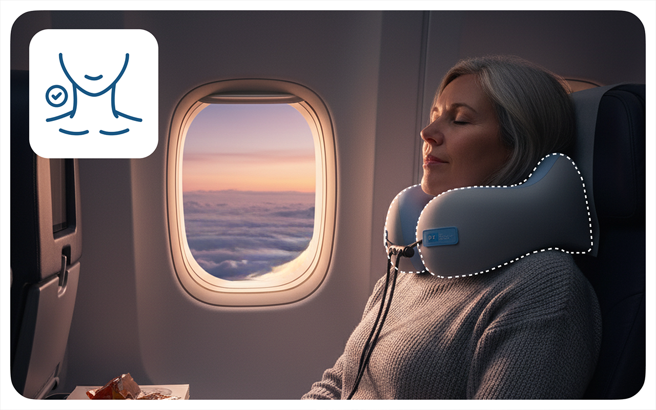 Ich reise viel beruflich und dieses Kissen ist ein Gamechanger. Mein Kopf kippt nicht mehr ab und es bleibt stundenlang bequem.