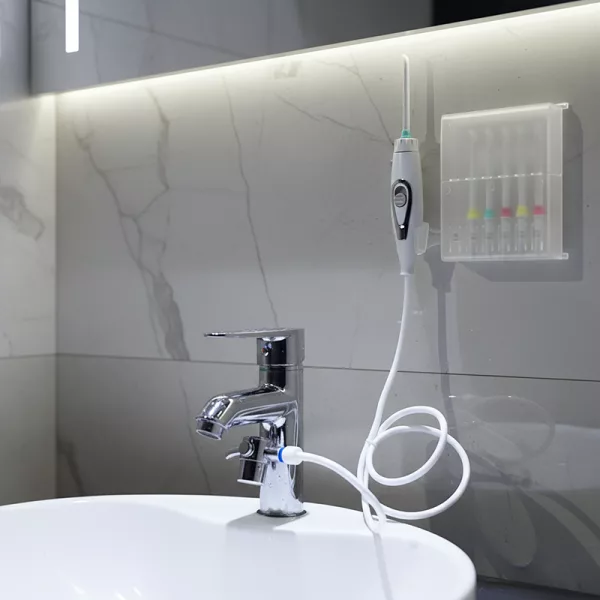 Dieser Wasserhahn-Zahnreiniger ist fantastisch, besonders für mein empfindliches Zahnfleisch. Er fühlt sich sanft an, entfernt aber trotzdem alles, was zwischen den Zähnen steckt. Leise und angenehm in der Anwendung.