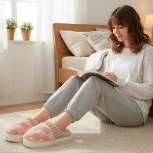Steigen Sie ein und genießen Sie sanfte Unterstützung unter Ihren Füßen. Jede Bewegung bringt eine sanfte Berührung, die müde Sohlen entspannt. Genießen Sie die Wärme auf kühlen Böden und entspannen Sie noch mehr nach langen Tagen. Wählen Sie Ihre Lieblingsfarbe, um gemütliche Abende aufzuhellen.