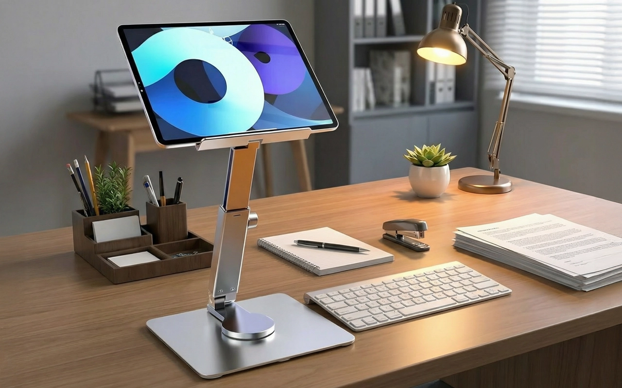 Kein unordentlicher Schreibtisch mehr! Dieser Halter hebt mein Tablet an und es fühlt sich an, als hätte ich viel mehr Platz für meine Bücher und Snacks.