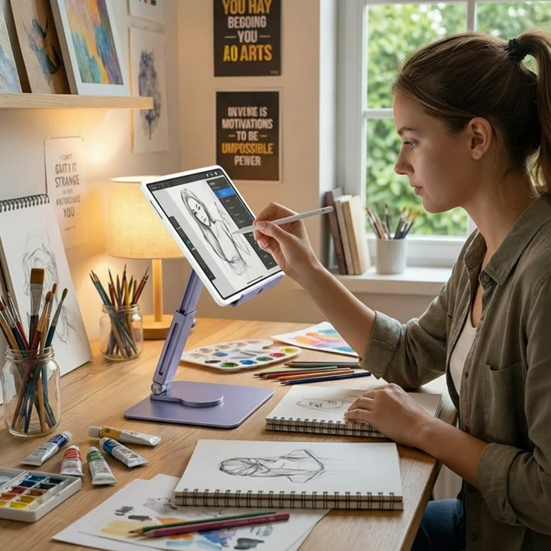 Ich liebe es, wie dieser Ständer mein iPad auf der richtigen Höhe hält. Zeichnen und Spiele spielen ist jetzt viel bequemer für meine Hände und meinen Nacken.