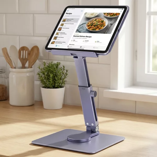 Ich benutze es ständig beim Kochen, damit Rezepte griffbereit sind. Der Ständer lässt sich leicht abwischen und hält mein Gerät perfekt aufrecht.