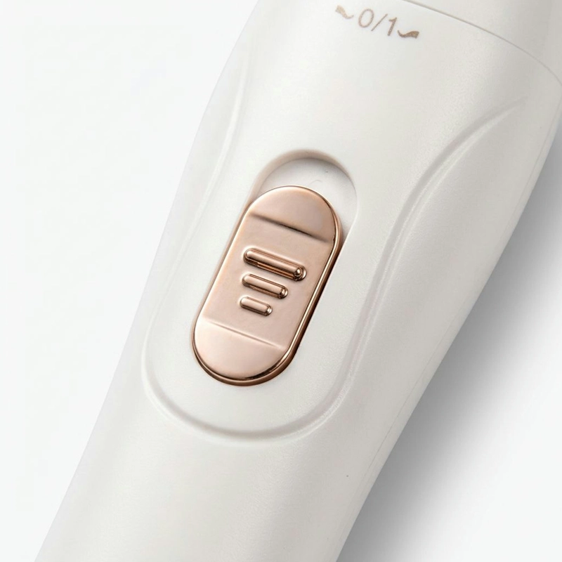 Drei Aufsätze sorgen für Gesicht, Achseln, Beine und Bikinizone. Ein kompaktes Gerät passt überall hinein und ermöglicht müheloses Styling an jedem Ort.