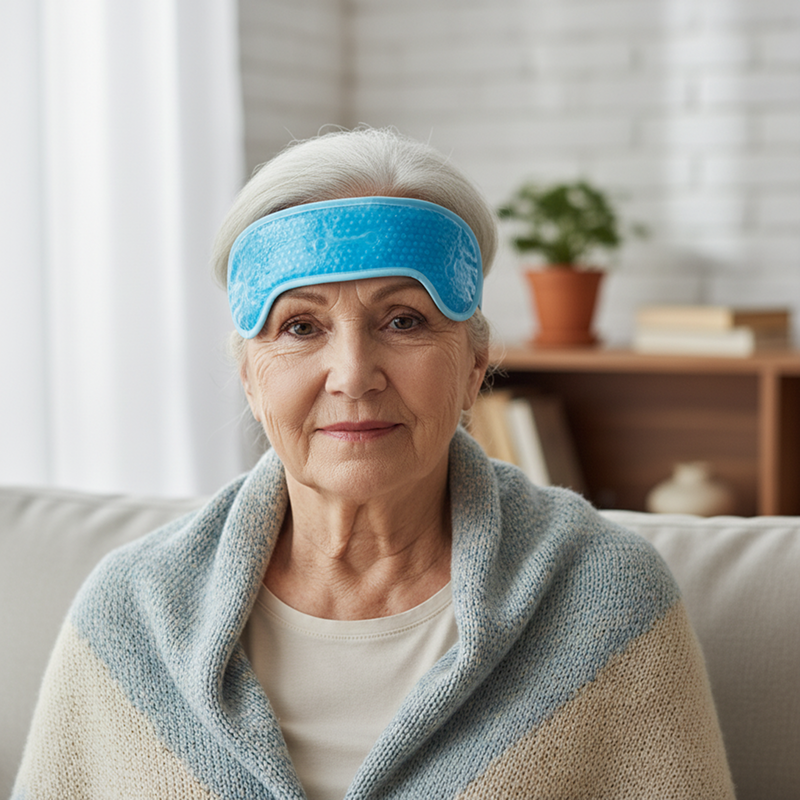 Ich war überrascht, wie gut dieses Kühlpad auf meinen Kopf passt. Der Riemen verrutscht nie und es kühlt meine Schläfen sofort.