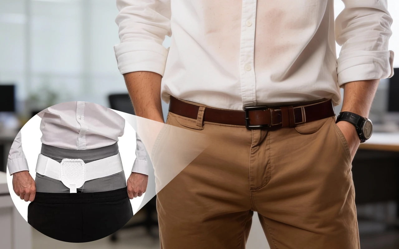 Tragen Sie den Ortorex Leistenbruch-Gürtel den ganzen Tag, ohne Aufmerksamkeit zu erregen. Das Selbstbewusstsein bleibt hoch, da er unauffällig unter der Kleidung sitzt.