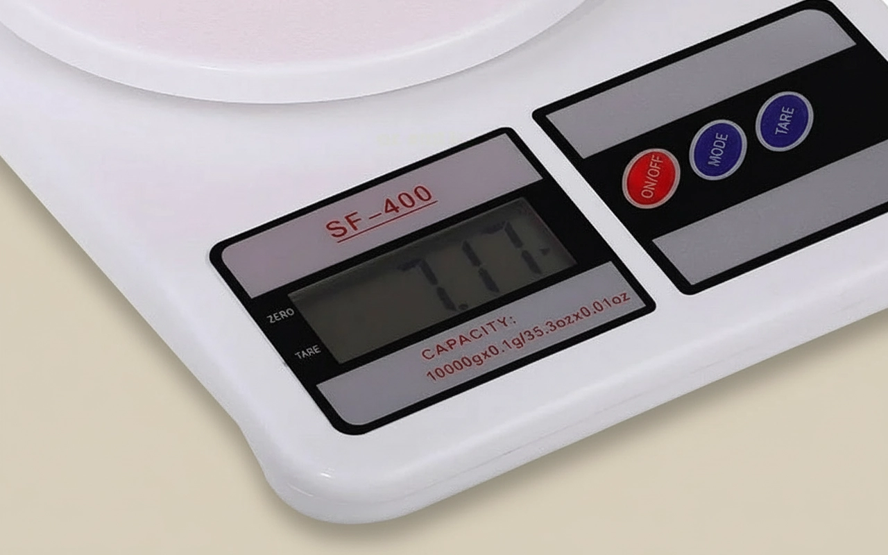 Diese Waage verfügt über ein LCD-Display, sodass Sie sie auch bei schwachem Licht verwenden können. So wird das Kochen zu jeder Zeit mühelos!