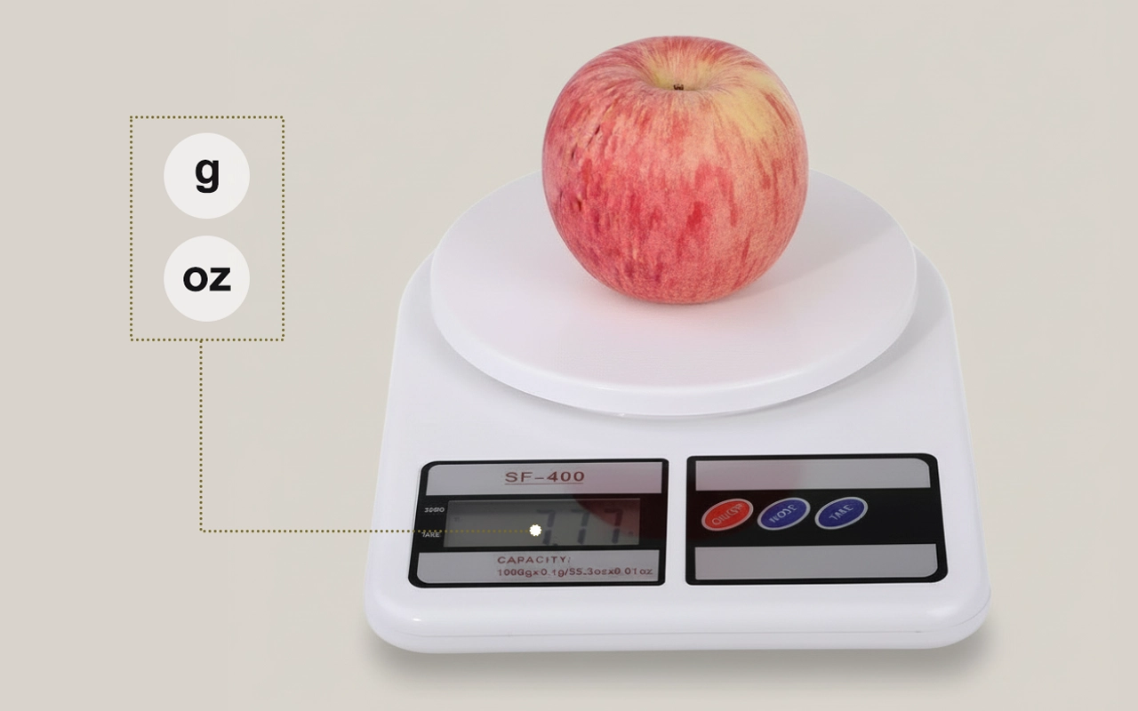 Unsere Küchenwaage ermöglicht Ihnen die Auswahl zwischen oz und kg.
