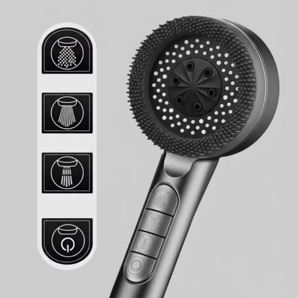Mit der Silikonbürste lässt sich Seifenablagerung leicht entfernen. Duschen fühlt sich jetzt wie ein tägliches Verwöhnprogramm an. Der Insta-Stopp-Knopf ist sehr praktisch.