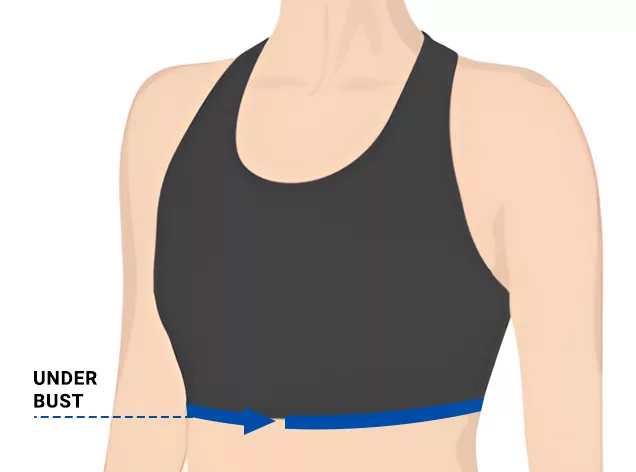- 2. Lege das Maßband direkt und gleichmäßig unterhalb deiner Brust um deinen Brustkorb, um den Unterbrustumfang zu bestimmen.