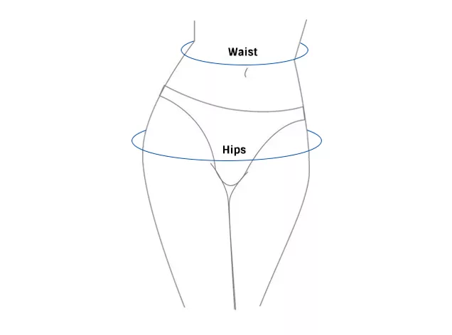 - 1. Legen Sie das Maßband um die schmalste Stelle Ihrer Taille und die breiteste Stelle Ihrer Hüften.