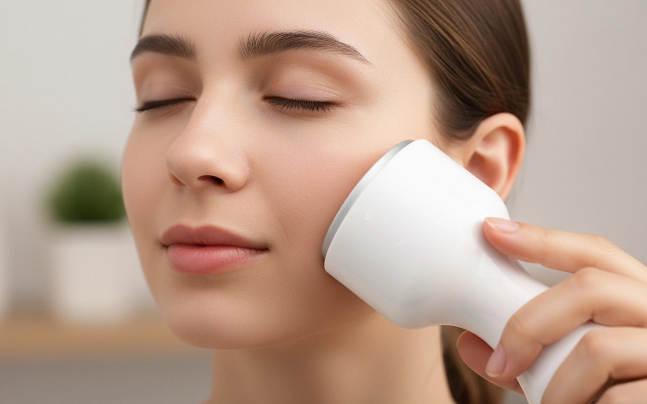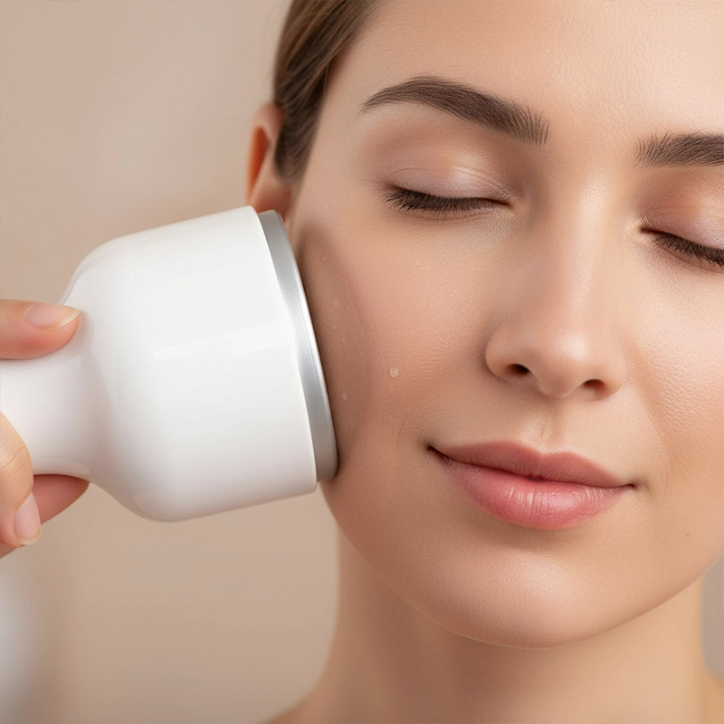 Spüre, wie sich deine Haut sanft strafft und ein makelloses Aussehen erhält. Gekühltes Metall lässt dein Gesicht weicher, klarer und jugendlicher wirken.