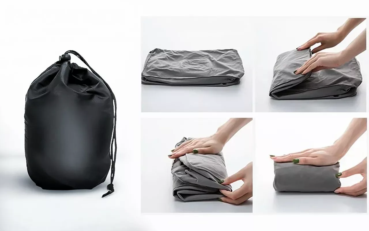Lässt sich leicht entleeren und in seinem kompakten Beutel verstauen. Tragen Sie es überallhin, ohne zusätzliches Gewicht oder Mühe.