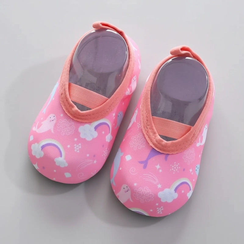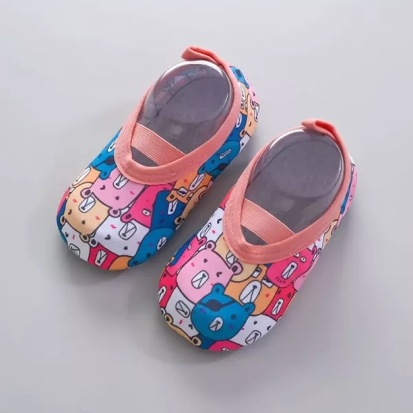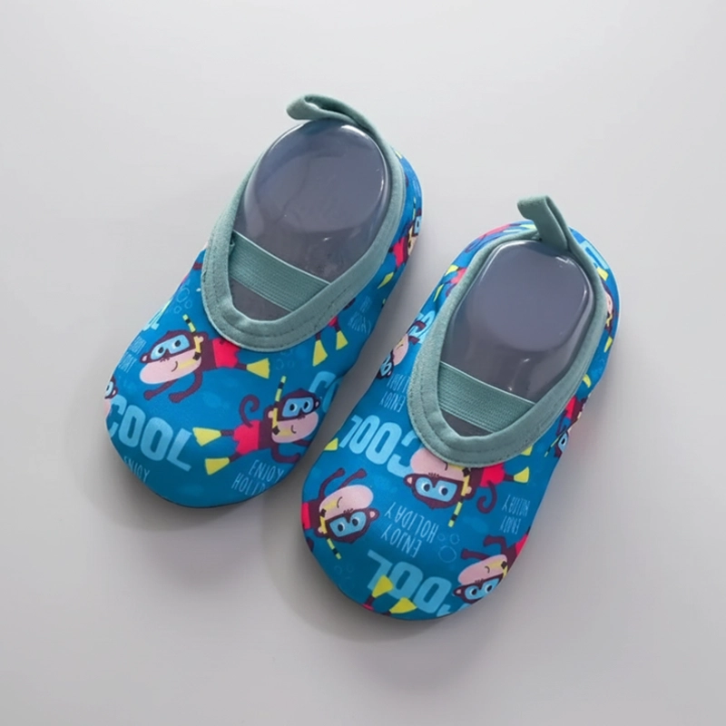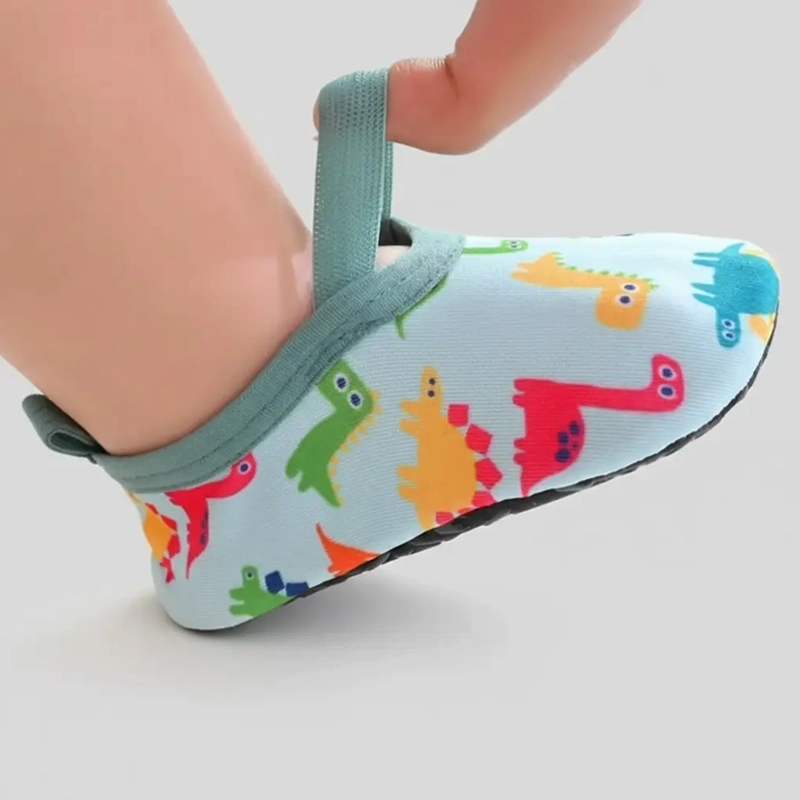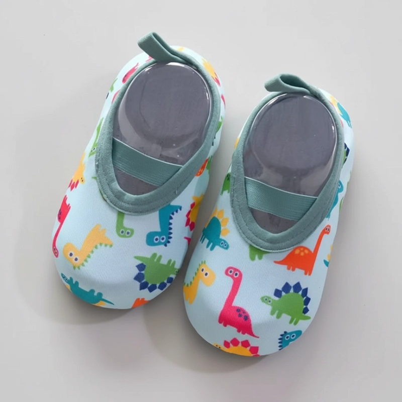 Unsere Schuhe haften fest auf nassen Oberflächen und helfen Kindern, sicher auf den Beinen zu bleiben.