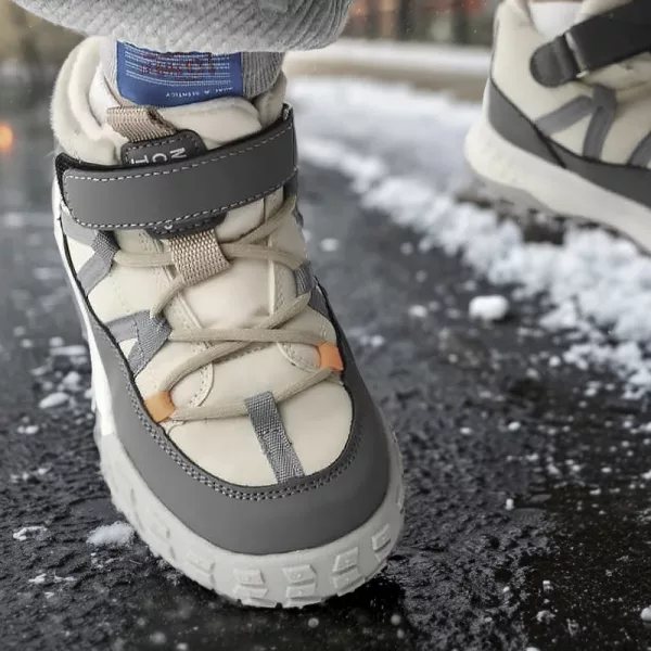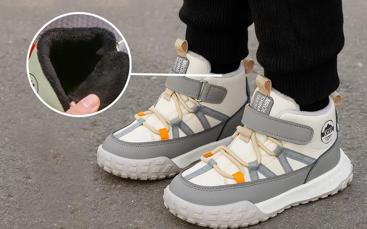 Plüschfutter hält die Wärme im Inneren und blockiert kalte Winterluft. Kleine Füße bleiben den ganzen Tag vor eisigen Gehwegen geschützt.