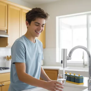 Hohe Flaschen zu füllen ist jetzt kein Problem mehr. Der lange Schlauch erreicht jede Stelle in meinem Spülbecken und meine Tochter kann ihn problemlos bei den Hausarbeiten benutzen.